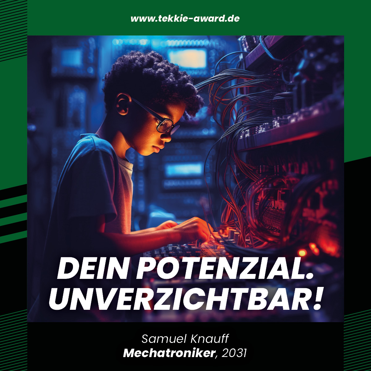Wir verbinden in 2025 den Tekkie Award mit einer digitalen Kampagne, um gemeinsam gegen den Fachkräftemangel in MINT-Berufen anzukämpfen, den Wirtschaftsstandort Deutschland zu stärken und mit kreativen Ansätzen Begeisterung für Mathematik, Informatik, Natur- und Ingenieurwissenschaft und Technik zu wecken. Message: „Wecke den Tekkie in dir!“